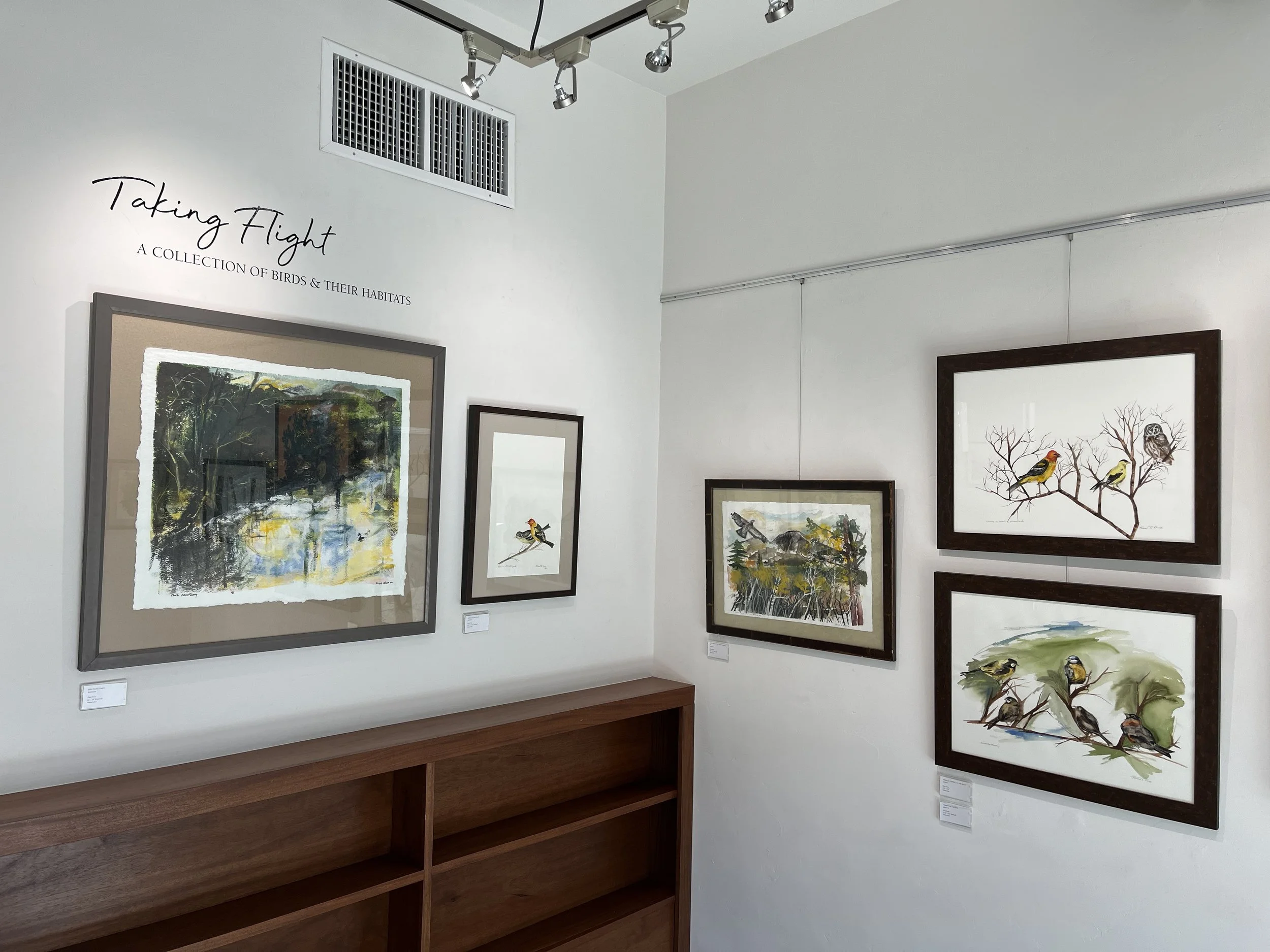 This month we are excited to showcase the work of oil and watercolor artist Dedi Knox. Her exhibition entitled Taking Flight: A Collection of Birds and Their Habitats brims with the wonderful essence of these great and humble creatures. We invite you to join us for the opening reception this Friday, September 2nd, from 5:00–8:00pm. Pine Moon Fine Art is open daily from 11:00am—6:00pm. We look forward to seeing you!